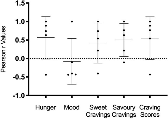 Thèm ngọt: không có sự thay đổi đáng kể nào về mức độ thèm ngọt từ điểm đầu cho đến khi kết thúc nghiên cứu nhưng có xu hướng giảm bắt đầu cuối tuần thứ 4. Thèm mặn: giảm đáng kể từ đầu nghiên cứu đến sang tuần thứ 2 và tiếp tục giảm ở tuần thứ 3 và thứ 4 (có ý nghĩa, P<0.001). Điểm thèm ăn giảm từ thời điểm đầu cho đến tuần thứ 4, nhưng không có sự khác biệt có ý nghĩa thống kê nào được tìm thấy giữa các tuần.